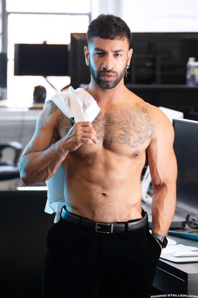 Mateo Zagal and Milo Madera are working alongside each other in the office and are checking each other out. Mateo follows Milo to the bathroom as the latter gets up from his desk. Soon, they’re two-by-one, checking out each other’s cocks. Mateo and Milo compare dicks after Mateo accepts Mateo’s advances. Mateo then takes it one step further, kicking the ground and putting Milo’s cock that isn’t cut, uncut in his mouth. Mateo uses his tongue to move from Milo’s shaft up to his crack in order to prepare his ass for an bareback fist. Milo blocks Mateo’s long, uncut fuckstick before Mateo can get it into. Once he’s done, Milo bends down and allows Mateo come in from behind. In response to Mateo’s punches all over the bathroom, Milo eventually sits back on the counter, and gets pounded until his loads spill over his abs. When it’s the turn of his coworkers to blow, Milo gets on his knees for the last time to take Mateo’s warm load on his face.